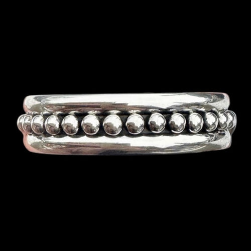 • Sterling Silver Double Row Beaded Cuff by Artie Yellowhorse, Size 6”