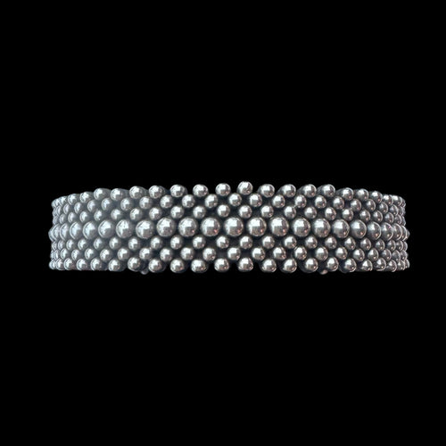 Sterling Silver Double Row Beaded Cuff by Artie Yellowhorse, Size 6.25”