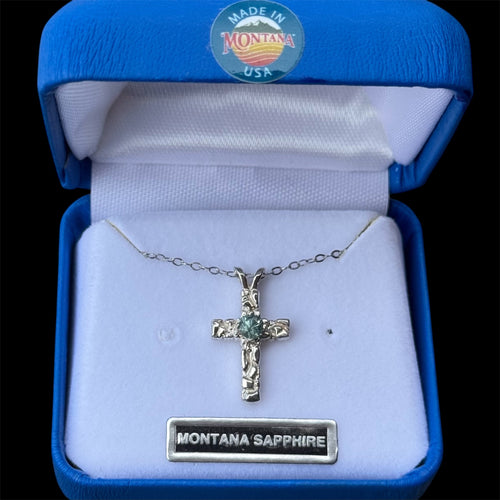 Montana Sapphire Solitaire Cross Necklace in Sterling Silver