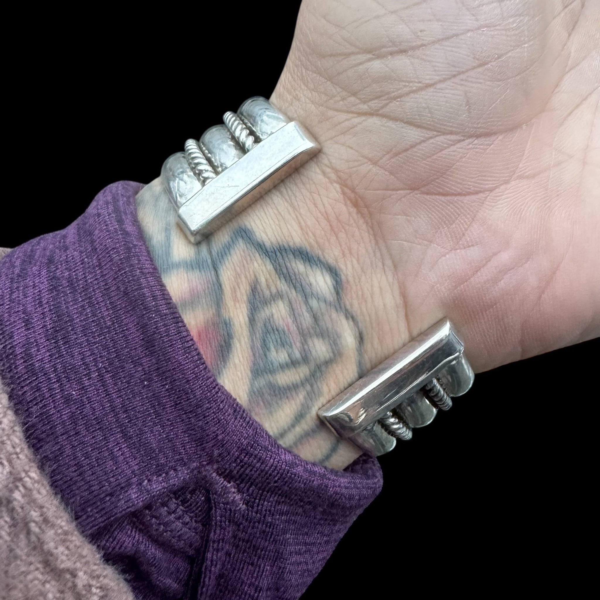Kingman Waterweb Turquoise bracelet with scattered dots and double twist design.